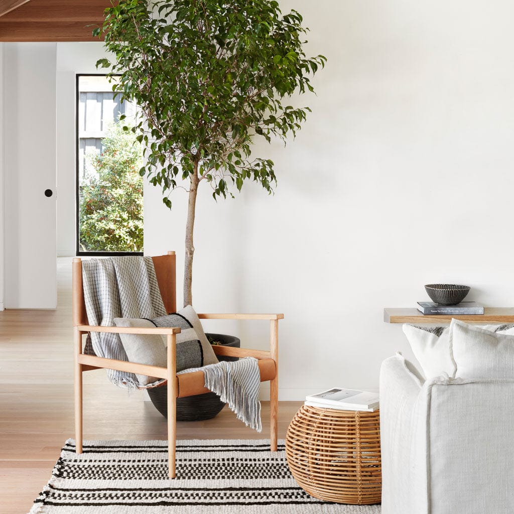 If you ask us, this petite lumbar pillow is the perfect finishing touch to any pillow setup. The star of the show is the meticulous hand-stitching using a technique called fil coupé (which means “cut threads”) – so each woven stripe has its own unique fringe. Set against a neutral backdrop of breezy linen, this pillow is a must for any globally-inspired room.