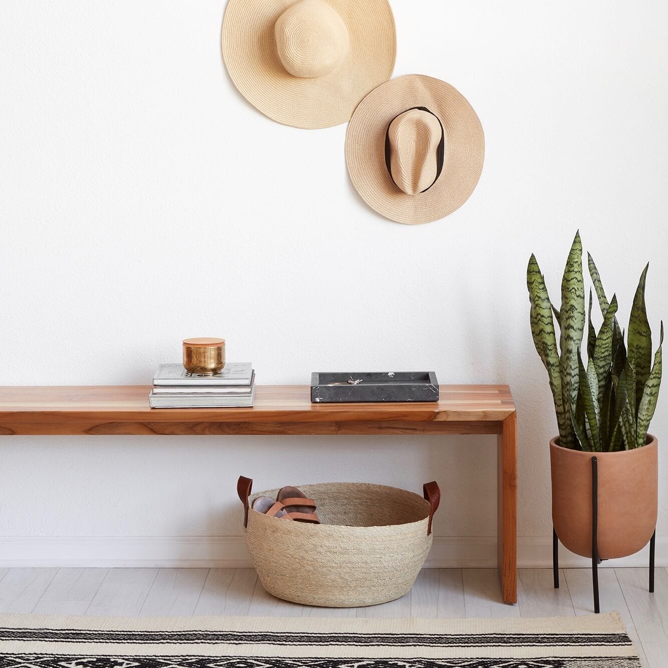 Meticulously handcrafted from locally-sourced palm leaves and accented with luxe leather handles, this set of low-profile baskets make stashing clutter... Read more