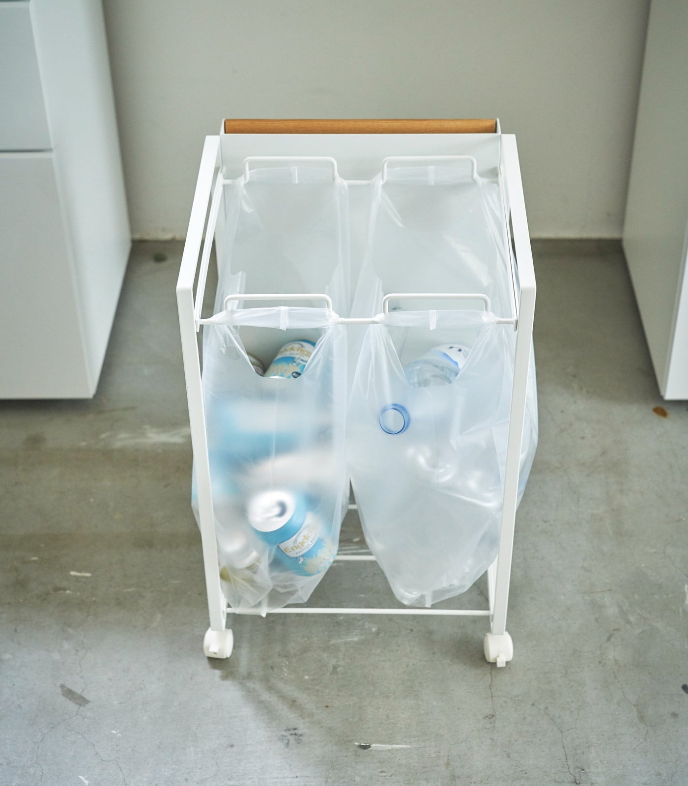 Rolling Trash Sorter - Steel + Wood