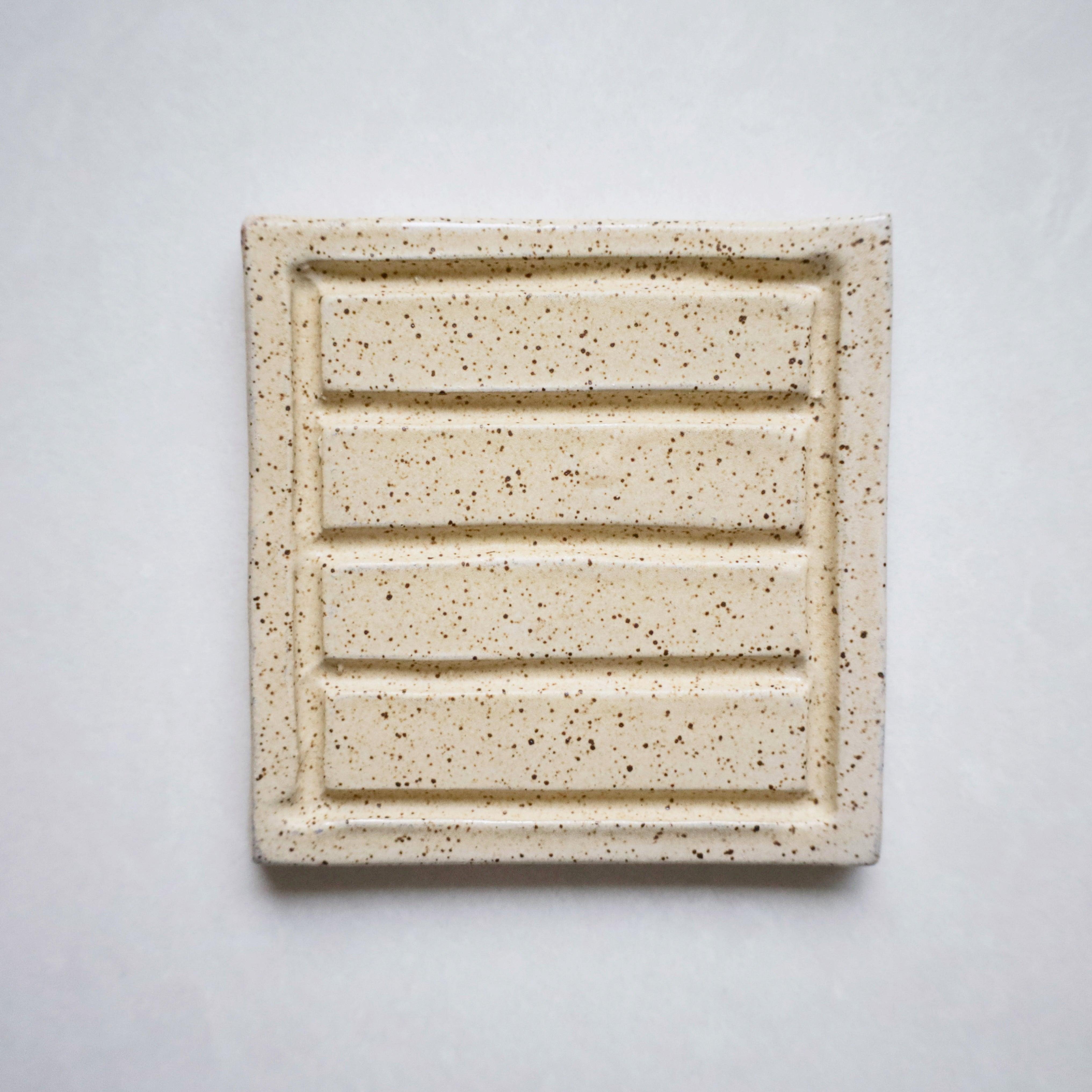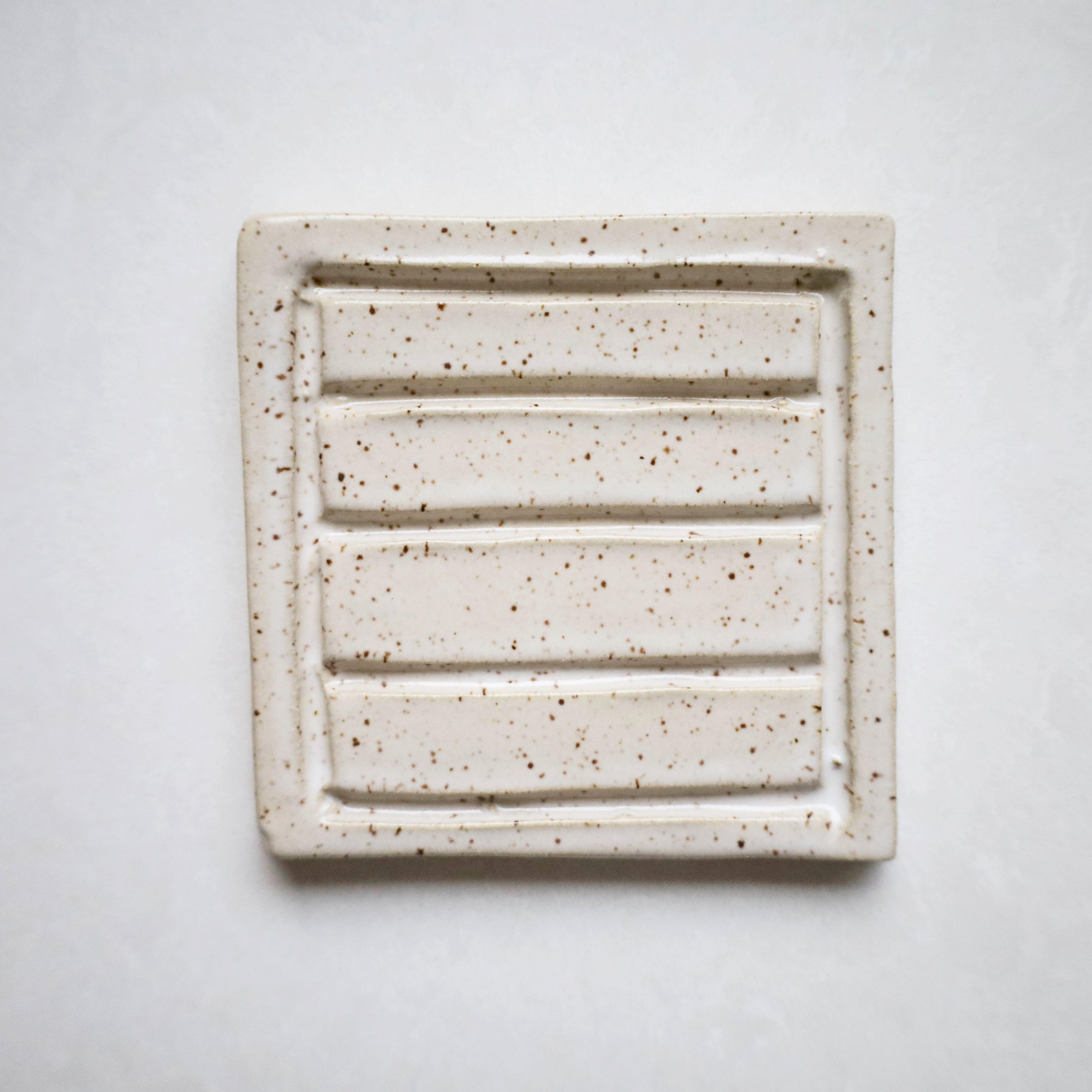These gorgeous soap dishes are handmade in small batches in Tofino, BC, and come in speckled white or beige finish. The square design has been custom-made to accommodate either the large or regular sized Make Nice Company solid soap bars.